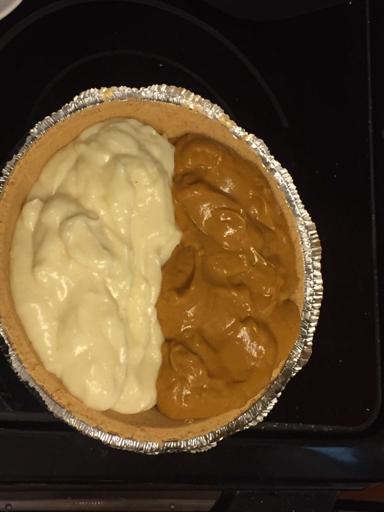 I put the puddings into the Graham Cracker Pie shell side by side.