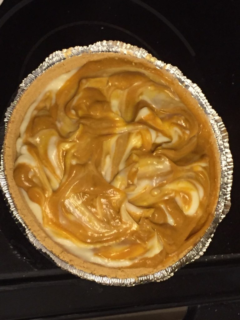 I then used a fork to swirl them together. I didn’t want to have them completely mixed together, but wanted there to be a distinction between the white chocolate pudding and the pumpkin spice pudding.
