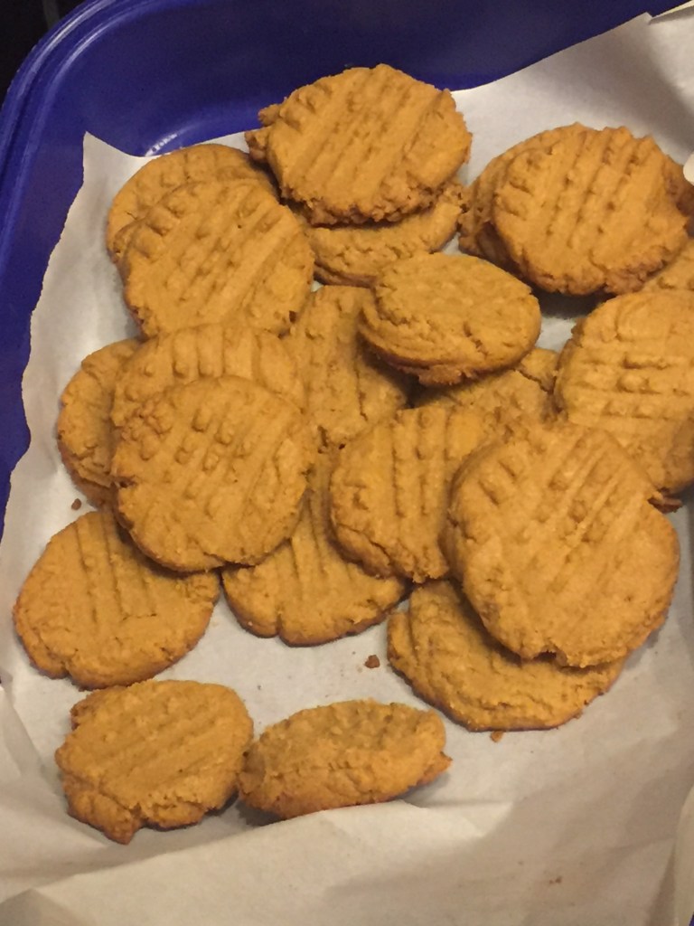 I like them better without flour for two reasons: ease and time. The amount of prep work and cleanup is reduced with this recipe. I enjoy baking traditional peanut butter cookies (and cookies in general), but there are other variables to account for when you add flour, baking soda, baking powder, softened butter, etc. If your measurements are wrong, the flavor and consistency will be off. If the butter is too hard or too soft, it will have an effect on how the cookies bake. I also like the flavor of these, since there is a much stronger peanut butter flavor. But if you want to add things to it (chocolate chips or Hershey’s Kisses, for example), I would go with the traditional peanut butter cookies, since the flavors and textures will blend together better. 🙂