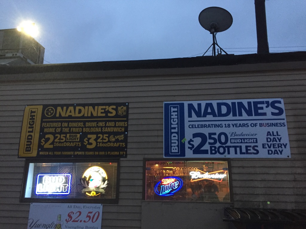 On the first day that I arrived in Pittsburgh last week, I asked for recommendations. Nadine’s was one of the places that was recommended. I was warned that it was not a fancy restaurant, and I was okay with that. The main road that I have been used to in Pittsburgh is Carson Street. Nadine’s is about a block and a half off the main road, and further East than most other places, so I think it’s one of the places that is more for the locals.