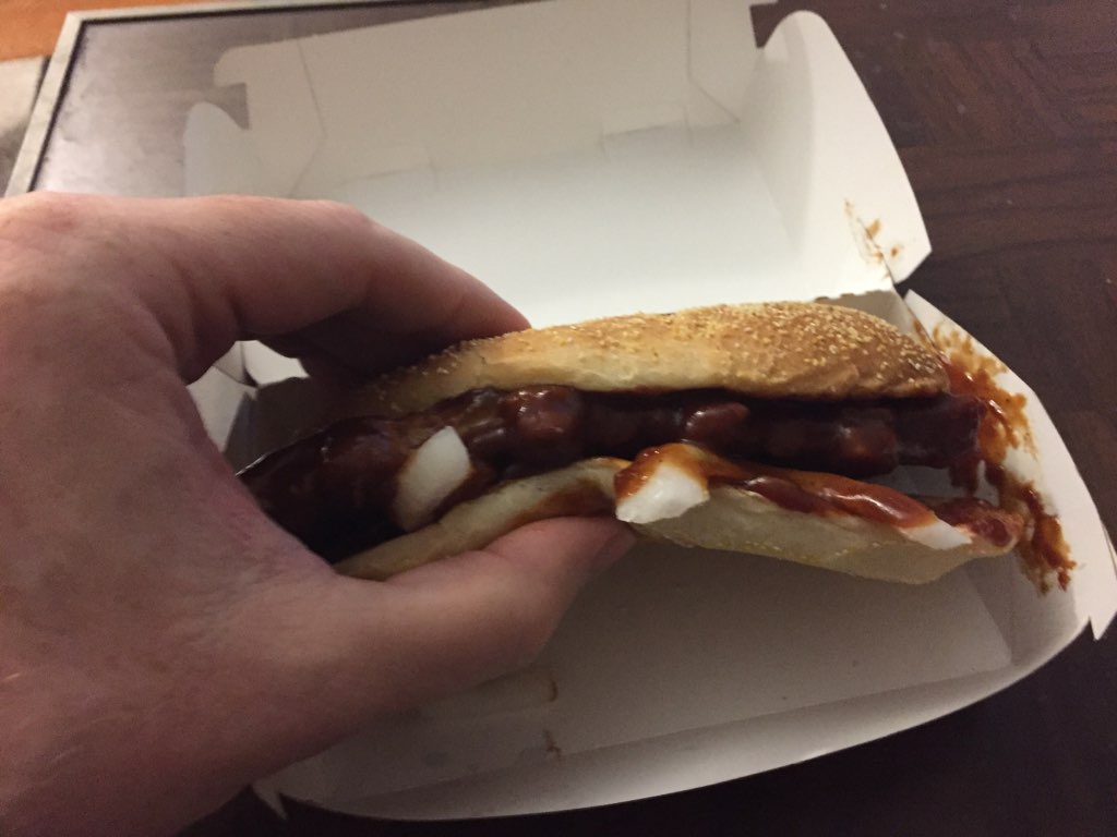 When I opened the sandwich, it had a familiar look to me. It is still a big sandwich, and they definitely put in a good amount of barbecue sauce.