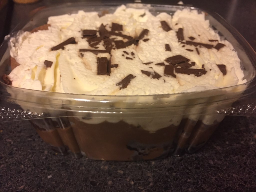 I also ordered their Death By Chocolate Mousse. I’ve had this before, and I’ll have it again. It’s delicious. There is a chocolate baked layer, a mousse layer, another chocolate baked layer, another chocolate mousse layer, and then the topping. When biting through all three of these components, it is a happy feeling. Wonderful flavor without being too sweet. Each component on their own are good, but combined, they are even better. This was definitely a great way to end my day on a positive note!