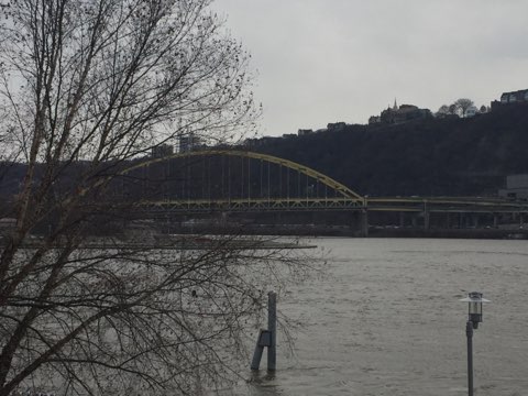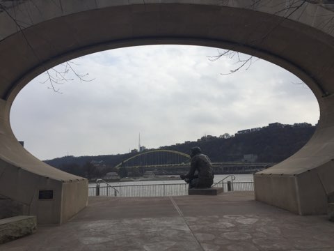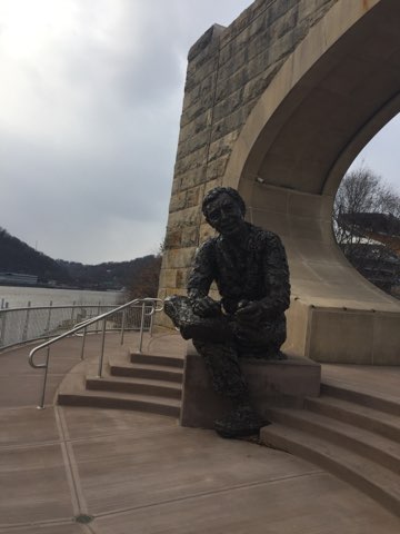 This week, I had the opportunity to visit Pittsburgh. I drove about 4 1/2 hours to get to my destination. I had done a little research and had decided on a few things that I wanted to do and see while I was over there. I knew that I wanted to try a sandwich at Primanti Bros. I also wanted to visit Market Square and wanted to see the Fred Rogers Statue. I was able to accomplish all of those goals. The drive was nice and scenic. I had to make one stop along the way and it was pretty cold and there was a definite wind chill factor. When I arrived at my hotel, it was cold. Mid 20s with a wind chill in the upper teens to low 20s. There were a few flakes flying around, but nothing really sticking.