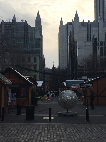 I thought I’d end this with a picture of the Clock in Market Square. You can see some of the buildings from the Christmas Market. This was my first visit to Pittsburgh. I was able to see some modern and some historical places. I was able to eat some good food. It was a great experience and I hope to have the opportunity to go back, do some more exploring, and eat some more great food!