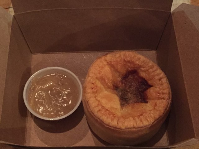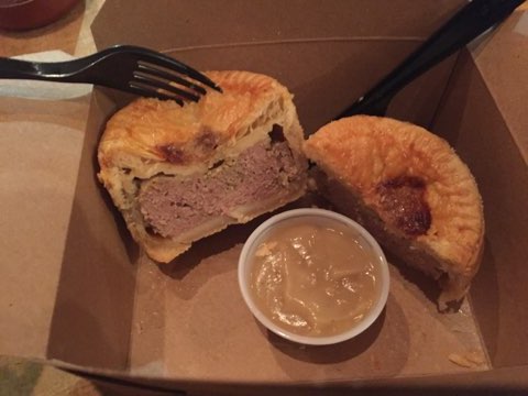 I decided on The Pub Chip Shop for dinner. I was contemplating getting the Scotch Egg, but decided on getting a Scotch Pie instead. A Scotch Egg is a hard-boiled wrapped in sausage, breaded and fried. The Scotch Pie is lamb wrapped in a pastry shell with gravy on the side. This was very good. Not too heavy, the right amount of food for me. I would come back to this restaurant again if I had the opportunity.