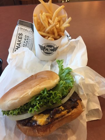 I stopped at the South Midway Travel Plaza and went to Steak ‘n Shake. I didn’t get a shake, but did get some food. I ordered The Original Double Cheese ‘n Fries. The burger had nice flavor and the skinny fries were also good. It was a nice finale to a couple of days of some good eating.