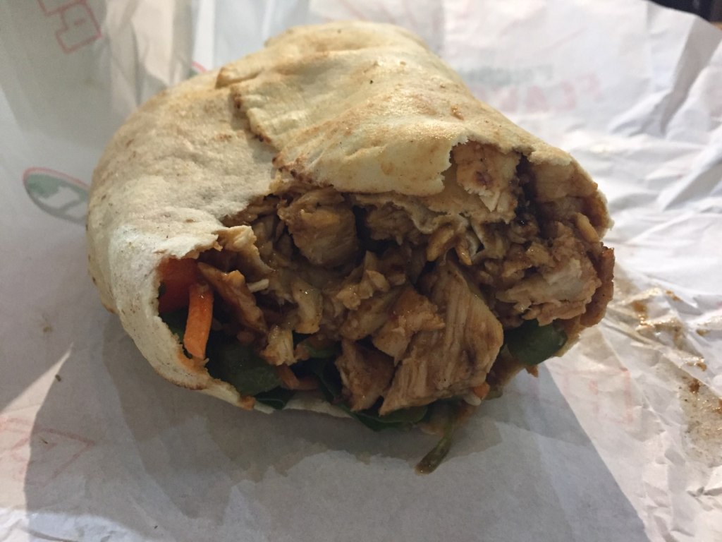 This was a really big pita. You can’t really tell from the picture, but this was pretty much the size of an extra large burrito.