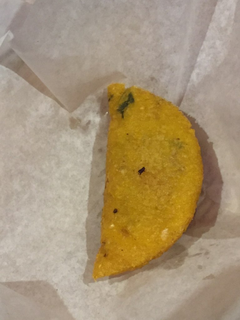 When it was time for dinner, I went with a recommendation of a co-worker and took a short walk from my hotel to Cilantro & Ajo, which is a Venezuelan Street Food restaurant. I asked the server for their recommendation, and they recommended that as a first timer, I should go with a Pabellon Arepas. This had shredded beef, black beans, plantain and queso fresco on a white corn meal patty. I’m not usually a fan of black beans, but they worked well here. There was a green sauce that came with this sandwich, and the green sauce was magic. I look forward to trying some of their other food when I’m back in town.